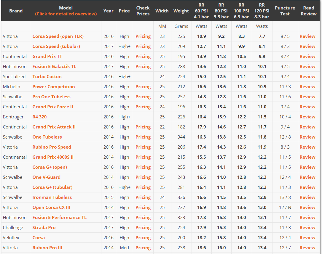 無內胎的滾阻是三種胎中最低的!
